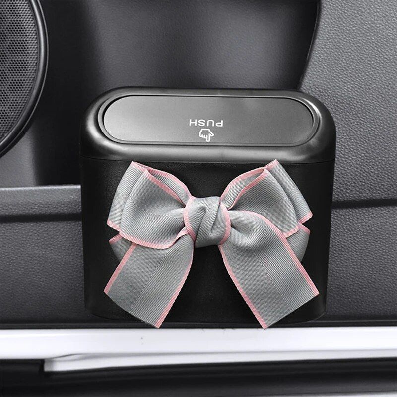 Bowknot Car Hanging Trash Bin with Press Lid