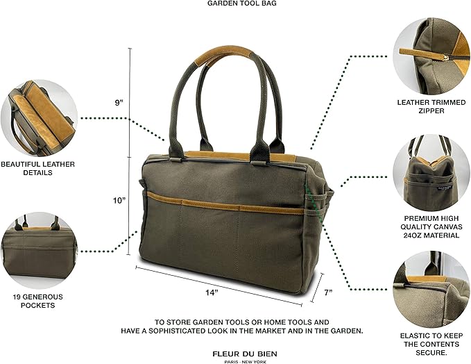 - KEEP EVERYTHING ORGANIZED: With 19 pockets and a 24oz large capacity, our gardening canvas tote bag gives you all the space you need to keep your tools organized. It鈥檚 made using durable canvas material that鈥檚 both dirt and water resistant