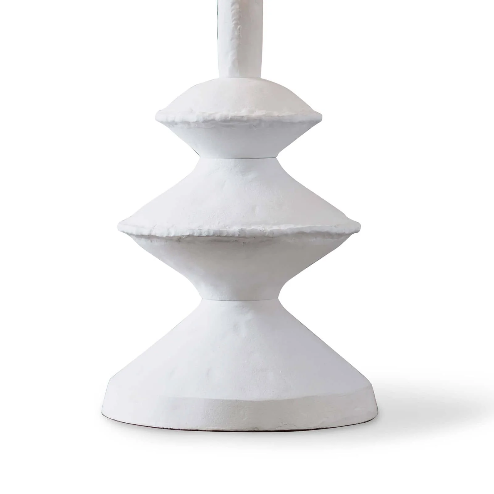 This table lamp features a matte white finish and complex curves inspired by paper mach茅 sculpture. Its unique design adds originality to various spaces.