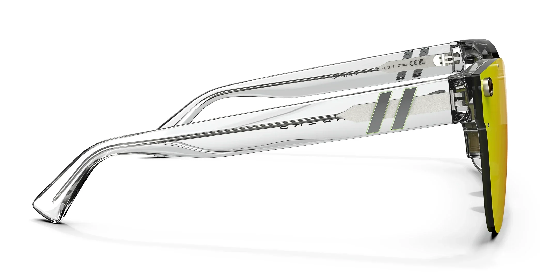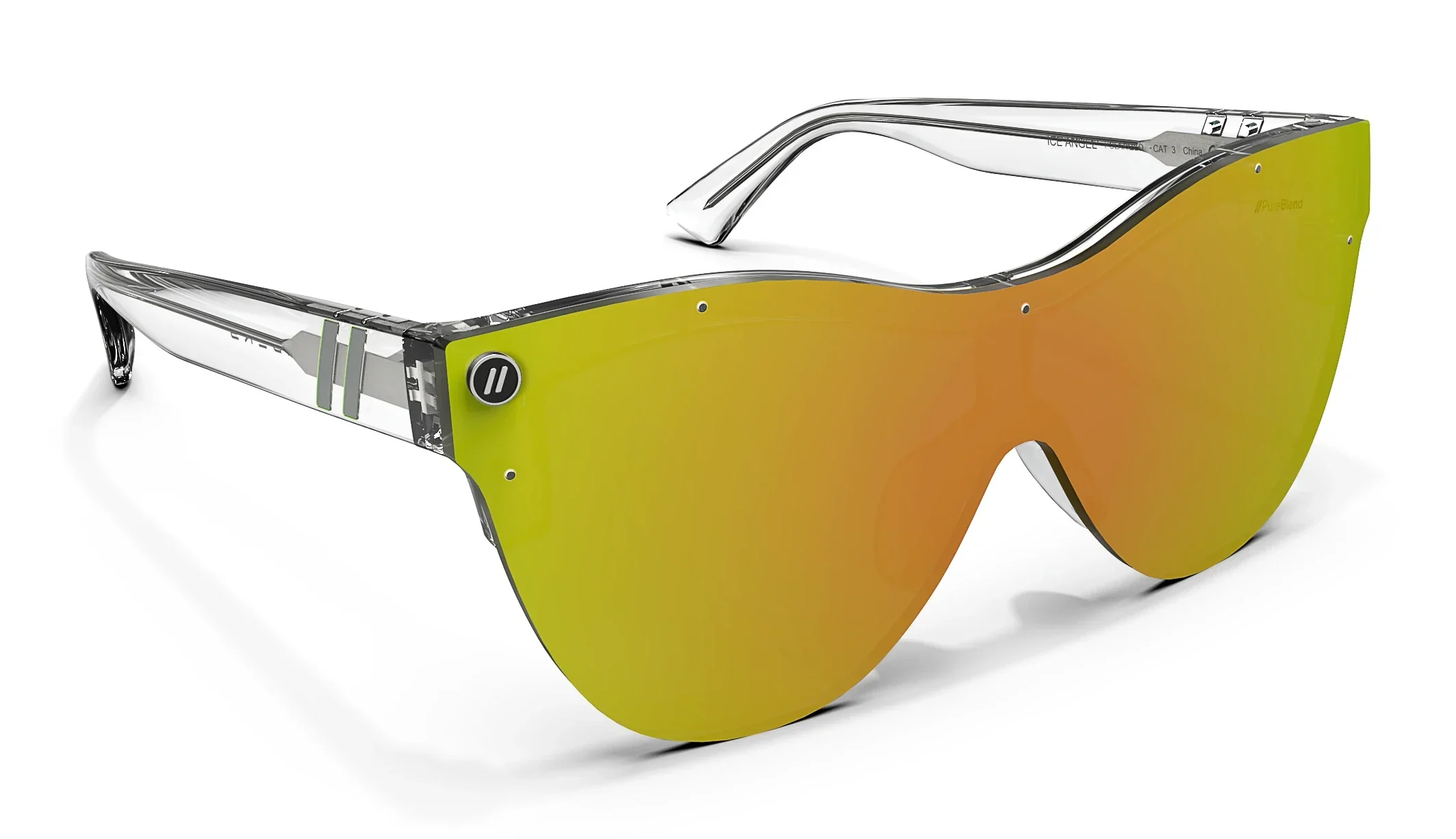 Divine design finds its home in 鈥æ¥ce Angel.鈥?These cat eye sunglasses from the 鈥楢lice Collection鈥?unite a rimless, single-lens design with an expressive color palette. The peach-lime gradient of the lens pops in contrast with the crystal-clear temples. Eye-catching detailing is also present throughout, with a silver-toned metal core and iridescent Life in Forward Motion stripes continuing the celebration of style. 鈥æ¥ce Angel鈥?is a spectacle of color and personality, available with your choice of a polarized PureBlend Lens. //