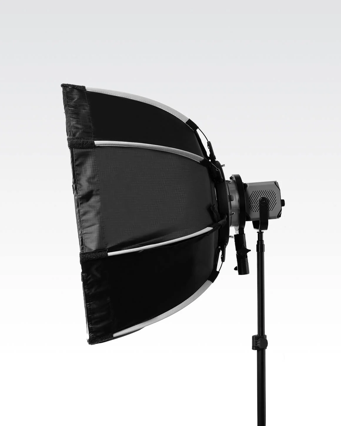 Elevate your lighting setup with the Lume Cube Large Softbox, designed for the Lume Cube XL 60W RGB COB Light. Featuring a 22-inch softbox diameter, it provides soft, even lighting, perfect for professional shoots. The built-in speed ring with a universal Bowens S Mount allows compatibility with industry-standard Bowens Mount accessories. Its integrated locking rods quickly lift and snap into place for an effortless setup. The Large Softbox includes the softbox, diffuser fabric, fabric grid, and a travel bag for easy transport, making it the ultimate tool for versatile lighting control.