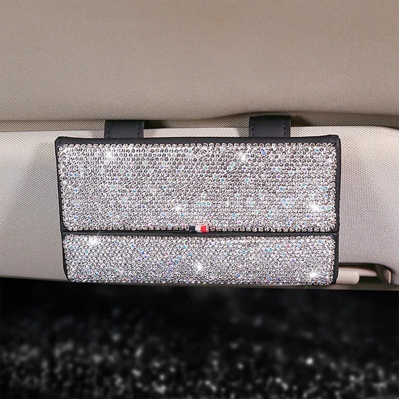 Enhance your driving experience and inject a touch of glamour into your car interior with our Luxurious Crystal Rhinestone Suede Leather Car Glasses Case. Designed for the fashion-savvy and practical driver, this case ensures your sunglasses stay protected and within reach. It鈥檚 not just an accessory; it’s a statement piece that blends functionality with style. Whether it鈥檚 a sunny day or a long drive at night, having your glasses at hand is now as easy as it is stylish.