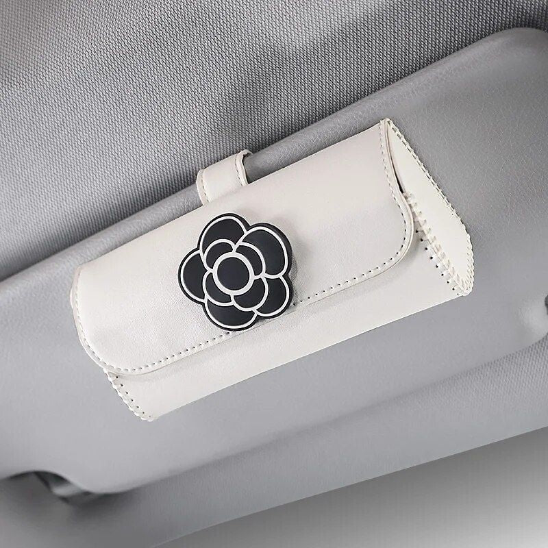 Universal Camellia Leather Car Visor Sunglasses Holder