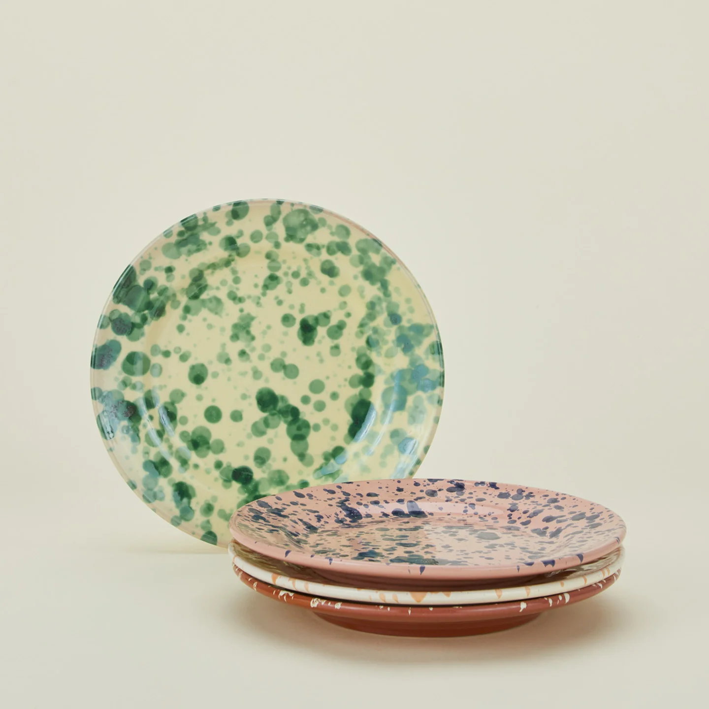 - A charming ceramic dinner plate in an elevated splatter pattern